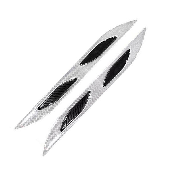 2 Sets Carbon Fiber Warning Sticker Car Anti-Collision Strip Leaf Plate Reflective Sticker Hood Light Eyebrow Anti-Collision Drops Sticker(4 PCS (Bumper White))