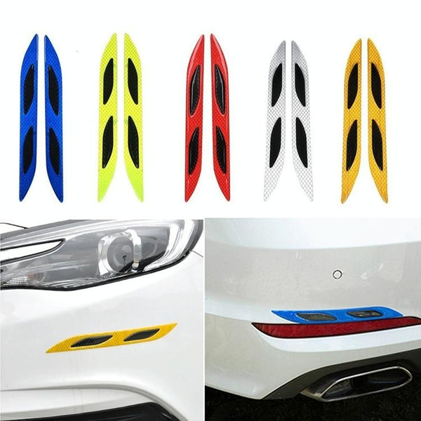 2 Sets Carbon Fiber Warning Sticker Car Anti-Collision Strip Leaf Plate Reflective Sticker Hood Light Eyebrow Anti-Collision Drops Sticker(4 PCS (Bumper Yellow))