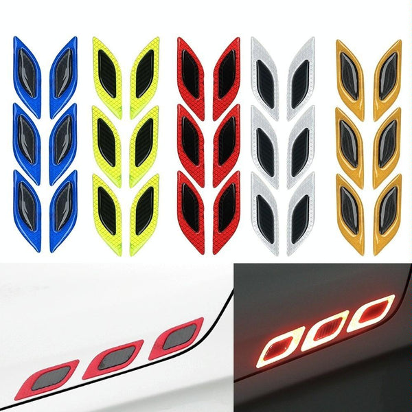 2 Sets Carbon Fiber Warning Sticker Car Anti-Collision Strip Leaf Plate Reflective Sticker Hood Light Eyebrow Anti-Collision Drops Sticker(6 PCS(Fluorescent Yellow))