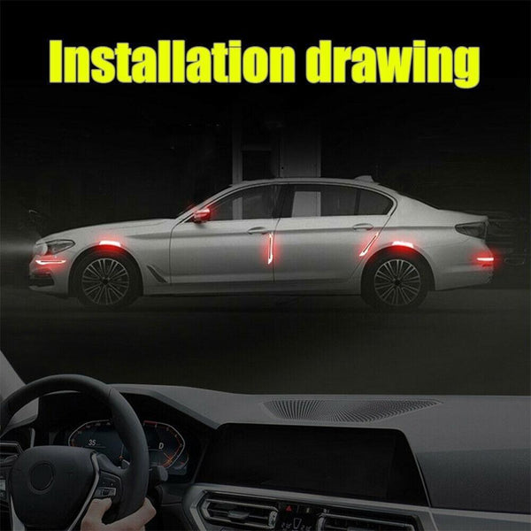 4 Sets Car Reflective Sticker Door Border Anti-Collision Strip Leaf Board Personality Rear View Mirror Warning Sticker(Red)