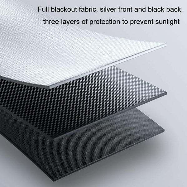 2. Fully blackout fabric, silver on the front and black on the back, three layers of protection to prevent sunlight exposure