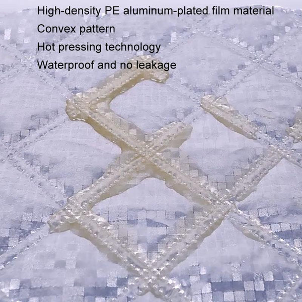 1. High-density PE aluminum-plated film material, concave and convex pattern, hot pressing technology, waterproof and no leakage