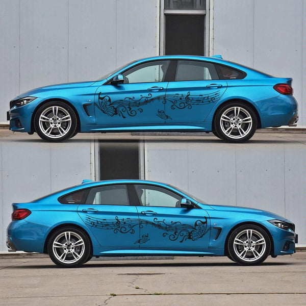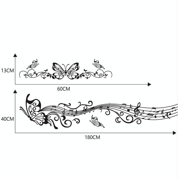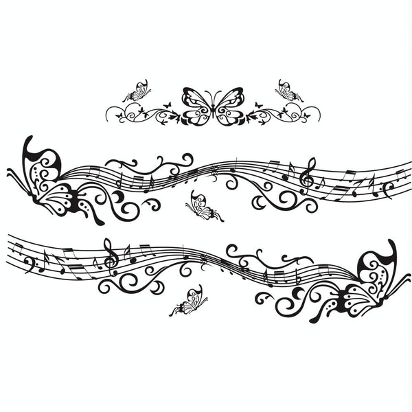 D-347 Butterfly Note Car Sticker Sheet Music Waist Line Body Sticker(Black)