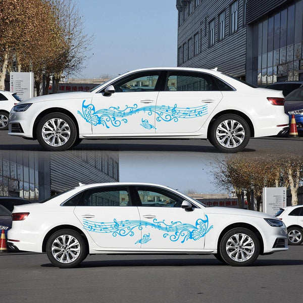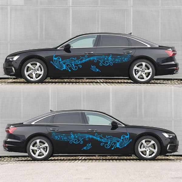 D-347 Butterfly Note Car Sticker Sheet Music Waist Line Body Sticker(Blue)