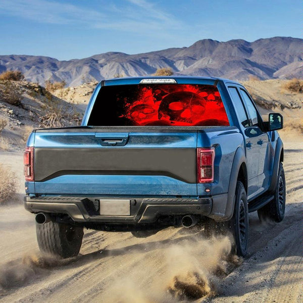 D-954 Flame Skeleton Rear Window Pattern Sticker Truck SUV Behind Wind Glass Stickers(Red)