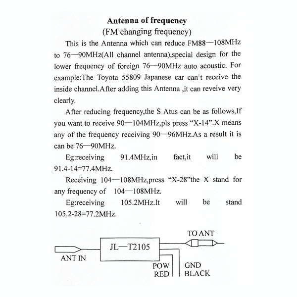 JL-T2105 Car Frequency Antenna Radio FM Band Expander for Japanese Cars