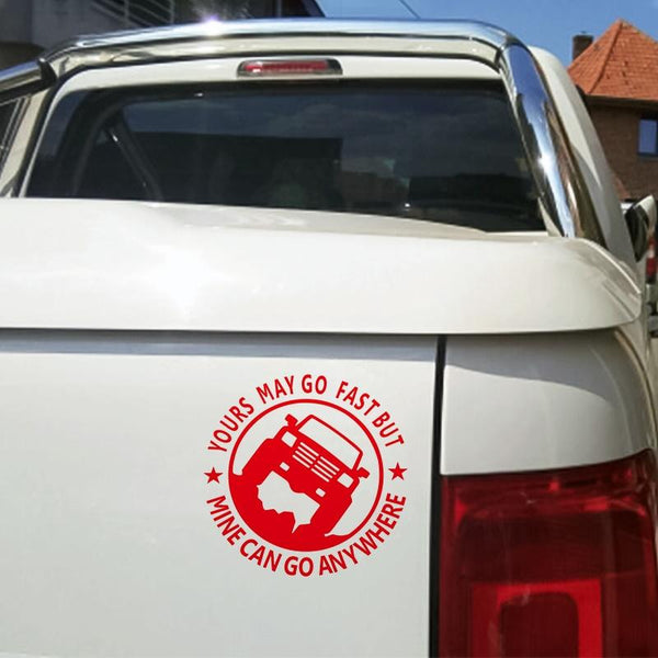 YOURS MAY GO FAST MINE CAN GO ANYWHERE Vinyl Decal Car Stickers, Size: 15x15cm (Red)