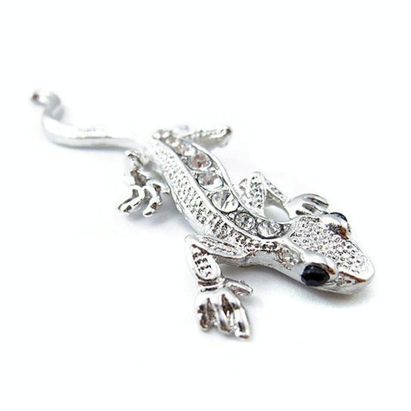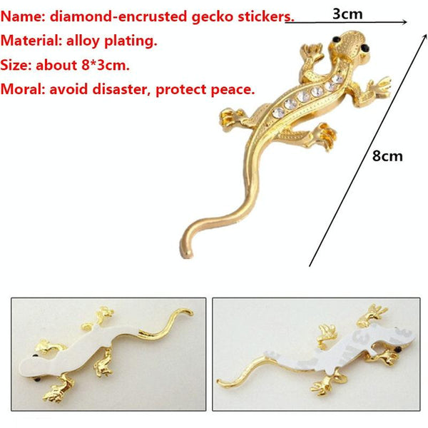 Zinc Alloy Rhinestone Gecko Metal 3D Car Sticker(Silver)