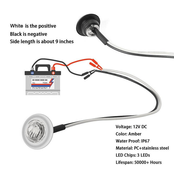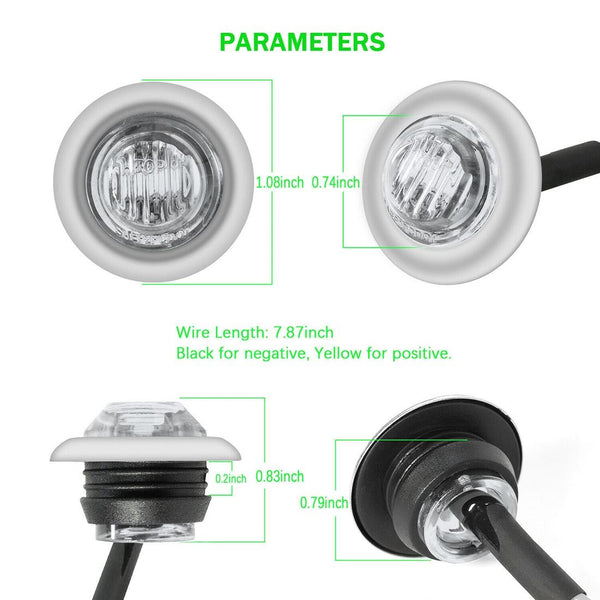 10 PCS MK-118 3/4 inch Metal Frame Car / Truck 3LEDs Side Marker Indicator Lights Bulb Lamp (White Light)