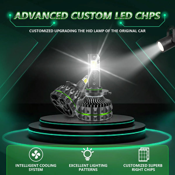 12. CSP 8760 LED chip, ultra-high brightness, service life up to 50,000 hours, each contrast reaches 120 6500K, luminous flux reaches 18,000 lumens per pair, brighter than holographic bulbs
