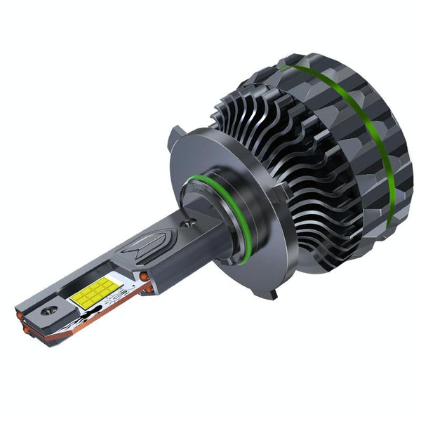16. Integrated heat dissipation, built-in heat dissipation system, equipped with hydraulic fan, the speed can reach 15000rmp, fast heat dissipation, the fan shaft is made of copper, the fan is stable and has a long life. In addition, the lamp body is made of die-cast aluminum, and the lamp bead substrate is composed of two high-quality copper sheets + two copper tubes. The copper sheet and the copper tube have better thermal conductivity, achieving a double-sided thermal conductivity effect. The substrate is closely combined with the aluminum lamp body and fully contacted, which can allow the temperature of the lamp bead to be quickly and efficiently transferred to the bottom fan, greatly improving the heat dissipation effect. Compared with the double copper tube headlights on the market, this base has added a copper belt to make the light source more stable