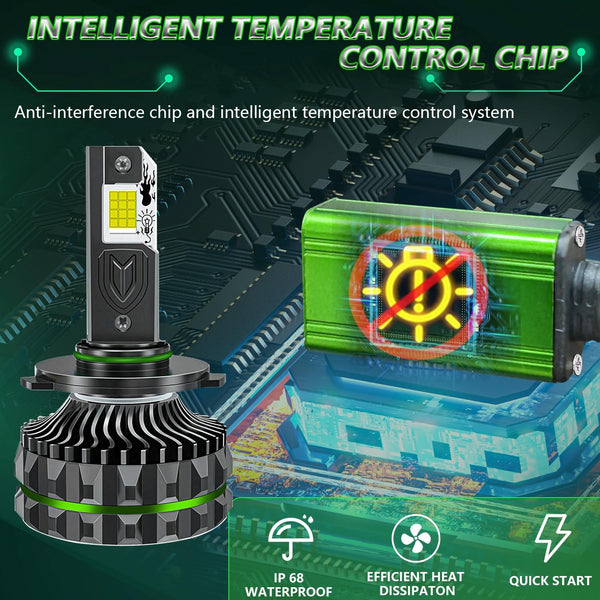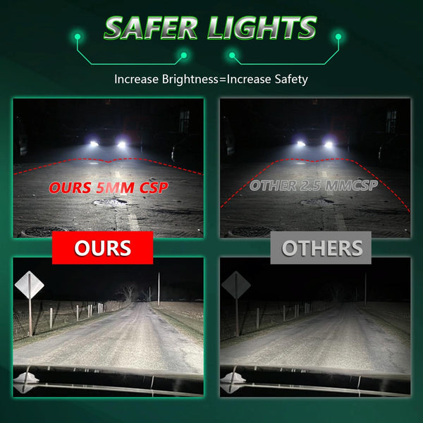 Each LED provides extremely bright white light, which helps to clearly see signs and obstacles in advance, (an additional layer of oil film is attached to the surface of the lamp beads, making the color temperature of the headlights more stable and effectively reducing light decay)
