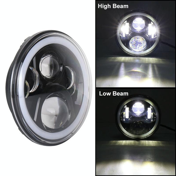 2 PCS 7 inch DC12V 6000K-6500K 50W Car LED Headlight Cree Lamp Beads for Jeep Wrangler / Harley, Support APP + Bluetooth Control(Black)