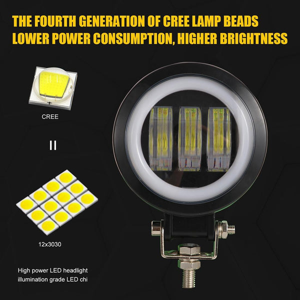 2 PCS Car 4 inch Round Spotlight Work Light with Angel Eyes (Blue Light)