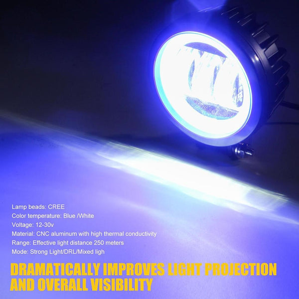 Mode: Glare / DRL (Angel Eye) / Mixed Light (Better penetration in rain and fog)