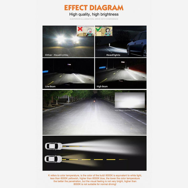 3. HID xenon headlight bulbs with lumen hlux 3800LM, up to 3x brighter light then halogen bulbs, improve visibility