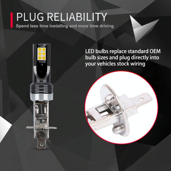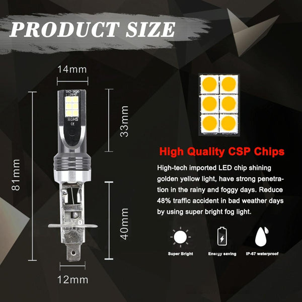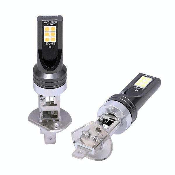 2 PCS H1 DC12V-24V / 12W / 3000K / 800LM 12LEDs SMD-3030 Car LED Fog Light (Yellow Light)