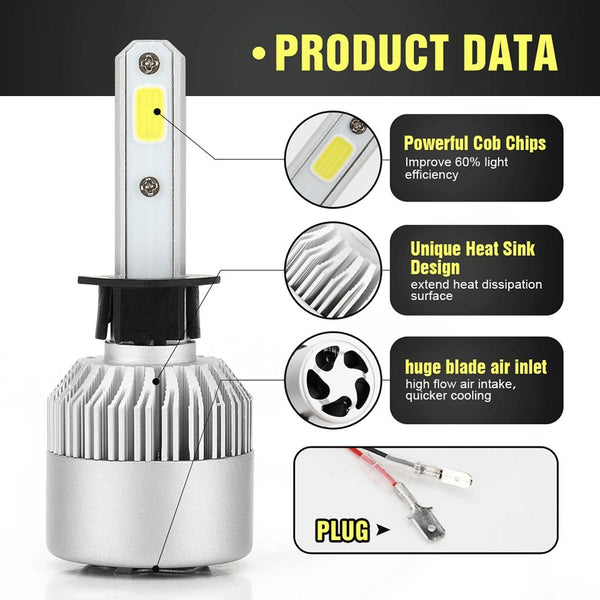 2 PCS S2 H1 18W 6000K 1800LM IP65 2 COB LED Car Headlight Lamps, DC 9-30V(Cool White)