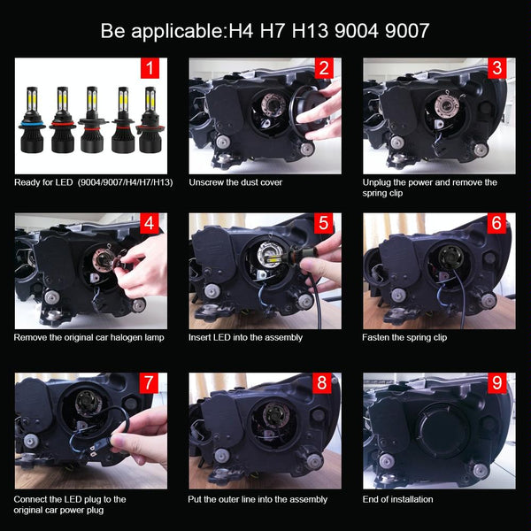 1. High brightness: The latest cob with 6000K cold white LED chip; 200% brighter than the existing halogen headlights.