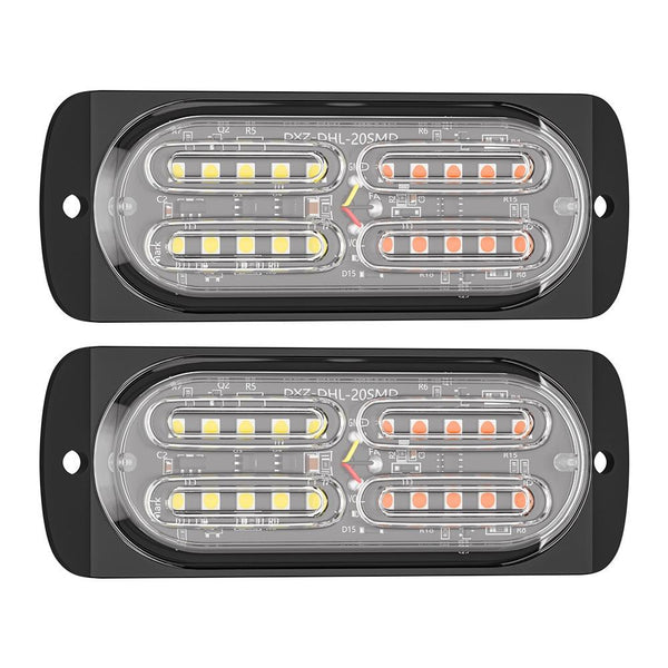 2pcs DC12-24V 3.2W Car 20LED Ultra-thin Strobe Light(White + Yellow Light)
