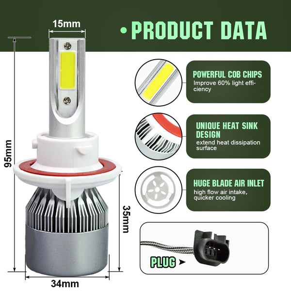2pcs H13 18W 1800LM 6000K Waterproof IP68 Car Auto LED Headlight with 2 COB LED Lamps, DC 9-36V(White Light)
