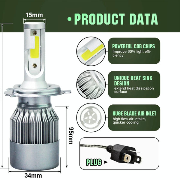 2pcs H4 18W 1800LM 6000K Waterproof IP68 Car Auto LED Headlight with 2 COB LED Lamps, DC 9-36V(White Light)