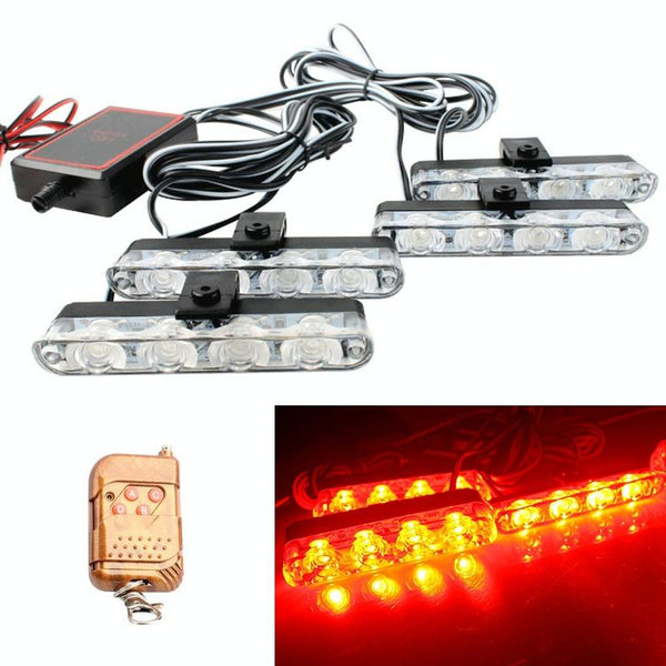 4 in 1 Car 16LEDs Grille Flash Lights Warning Lights with Wireless Remote Control(Red)