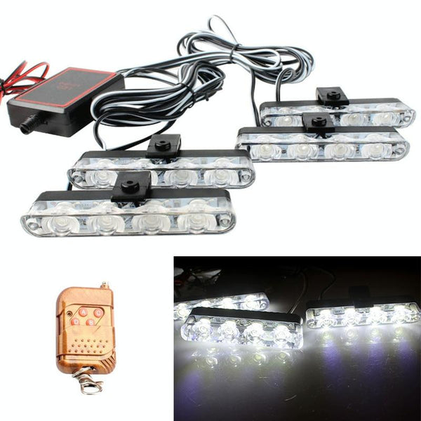 4 in 1 Car 16LEDs Grille Flash Lights Warning Lights with Wireless Remote Control(White)