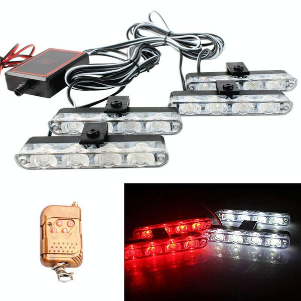 4 in 1 Car 16LEDs Grille Flash Lights Warning Lights with Wireless Remote Control(White Red)