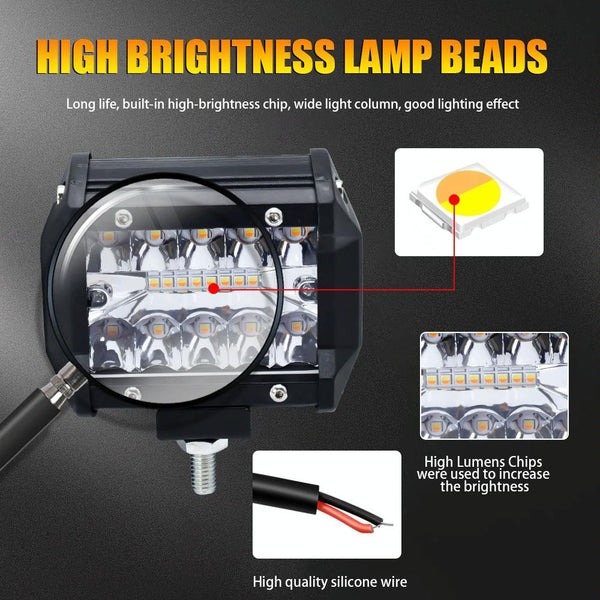 4 inch 13W 3 Row Car LED Strip Light Working Refit Off-road Vehicle Lamp Roof Strip Light with Yellow White Flash