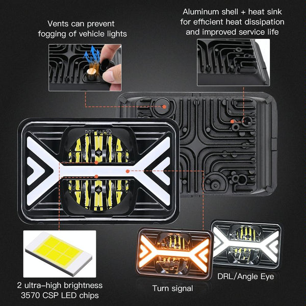 5 inch Square Truck Two-color Headlights 9-30V 36W / 22W 4000LM 6000K / 3000K