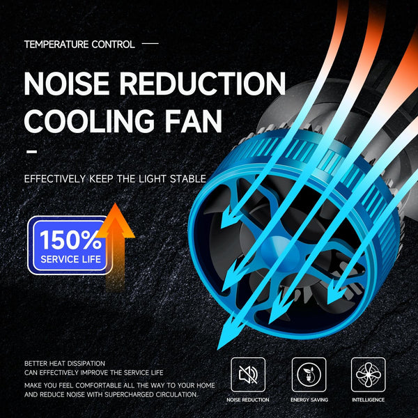 14. Double-effect integrated heat dissipation, built-in heat dissipation system, equipped with hydraulic fan, the speed can reach 12000rmp, the base is hollowed out, which greatly increases the contact area and dissipates heat faster. The fan shaft is made of copper, the fan is stable, the noise is lower, and the product life is up to 50,000 hours. 15. The drive solution adopts a constant current intelligent temperature control module (intelligent control of current, protection of car lights and improvement of driving safety)