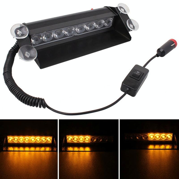 8W 800LM 8-LED Yellow Light 3-Modes Adjustable Angle Car Strobe Flash Dash Emergency Light Warning Lamp with Suckers, DC 12V