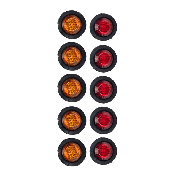 A5013 Red + Amber Light 10 in 1 Truck Trailer LED Round Side Marker Lamp