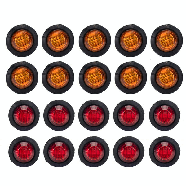 A5014 20 in 1 Red + Amber Light Truck Trailer LED Round Side Marker Lamp