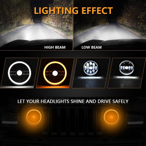 2. High-performance Cree LED chip, super bright far and near beam, DRL white halo, turn signal amber halo. Over 50,000 hours of service life.
