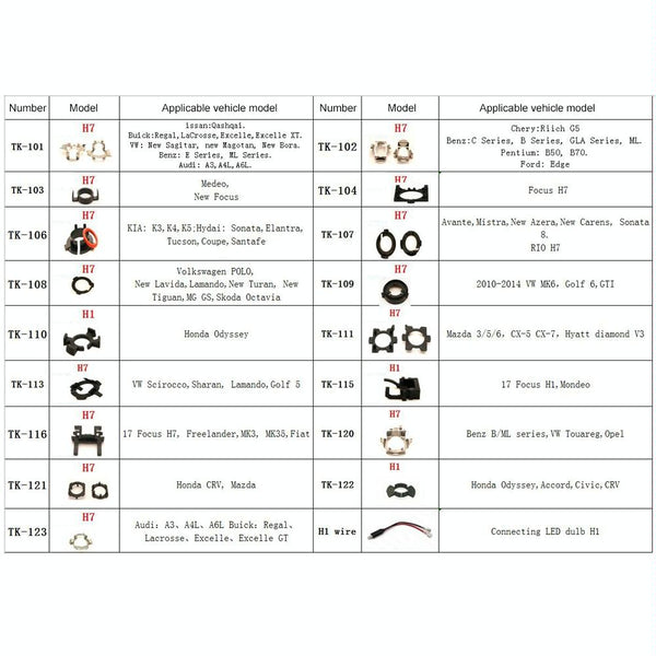 Car Headlight Bulb Base Retainer Holder Adapter Set