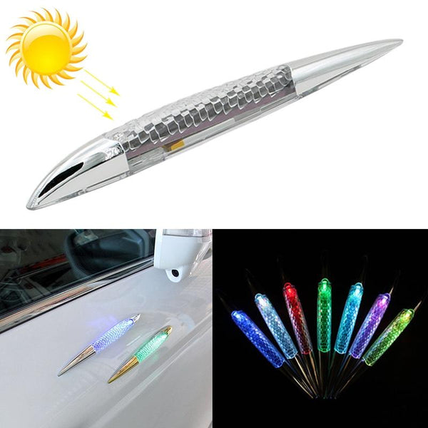 Car Solar Shark Gill Warning Lights Car Door Anti-collision Rear-end Collision LED Dlashing Lamp, Mode: Constant Bright + Flashing (Silver)