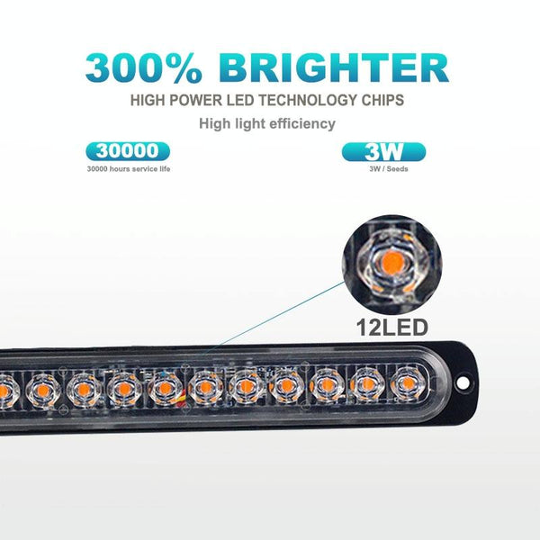 DC12V-24V / 36W Car Truck Emergency Strobe Flash Warning Light 12LEDs Long Ultra-thin Side Lights(White)