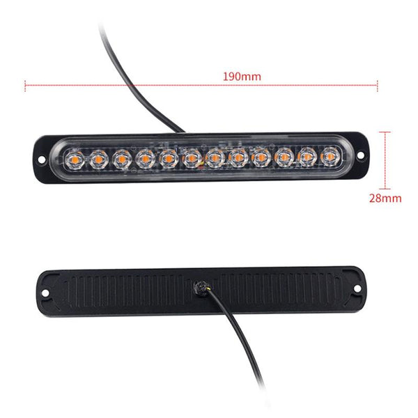 DC12V-24V / 36W Car Truck Emergency Strobe Flash Warning Light 12LEDs Long Ultra-thin Side Lights(Yellow)