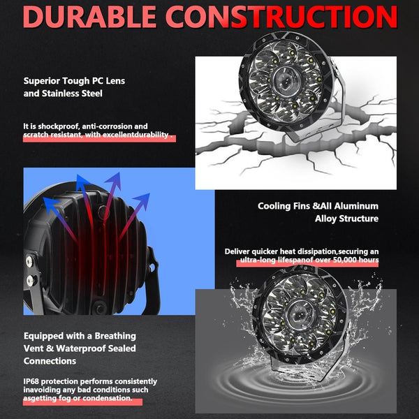 5. Wide application: DC 9-30V working voltage is suitable for various vehicles, such as off-road vehicles, and is compatible with almost all jeeps, cars, trucks, motorcycles, SUVs, ATVs, boats, etc. Many indoor and outdoor uses: garden lighting, backyard lighting, backup lights, off-road lighting, architectural lighting, and more.