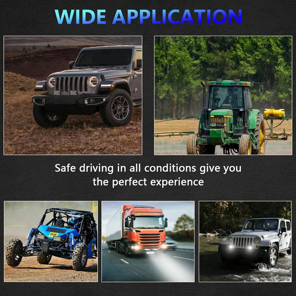 5. Compatible with all motorcycles, jeeps, 4x4s, tractors, trailers, golf carts, pickup trucks, cars, SUVs, ATVs and boats, etc. Equally suitable for indoor and outdoor use: garden lighting, backyard lighting, reverse lights, off-road lighting, architectural lighting, etc.