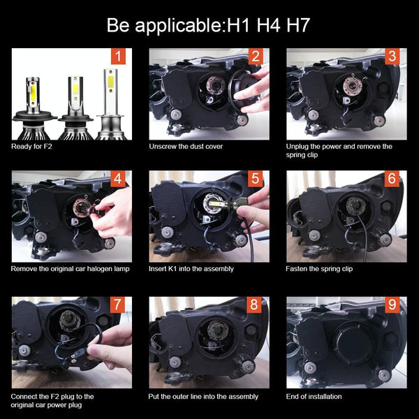 1. High brightness: COB with 6000K cool white LED chip; 300% than existing halogen headlights.