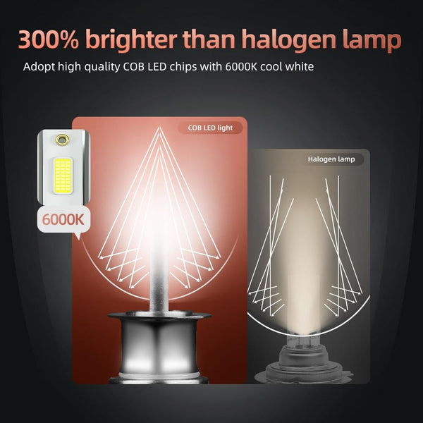 1. High brightness: COB with 6000K cool white LED chip; 300% than existing halogen headlights.