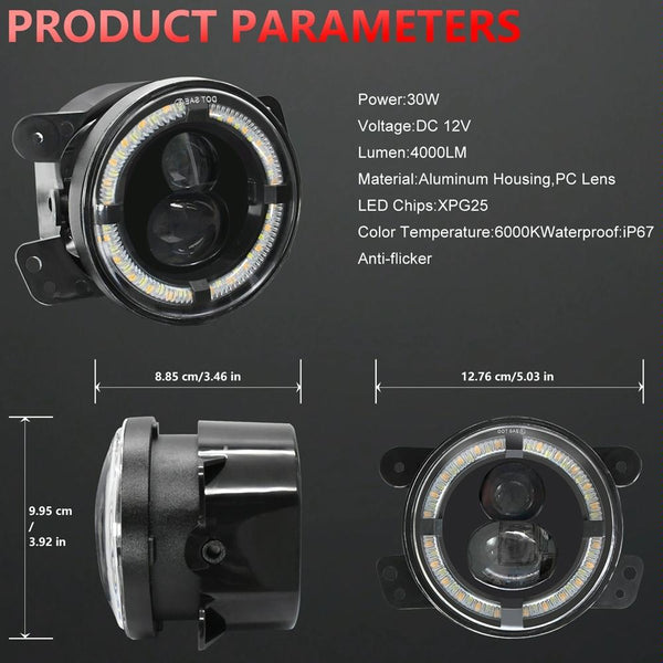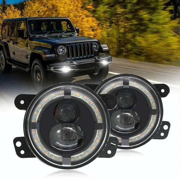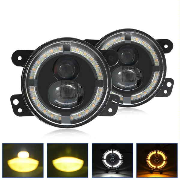 For Jeep Wrangler JK 2 Door 2007-2015 Y4 4 inch 1 Pair Light Guide Dual Lens Fog Light(Yellow White)