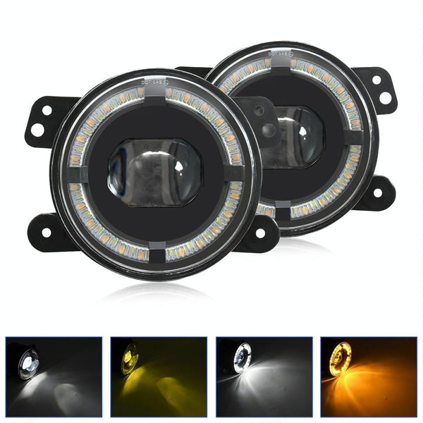 For Jeep Wrangler JK 2 Door 2007-2015 Y5 4 inch 1 Pair Light Guide Single Lens Fog Light(Yellow White)