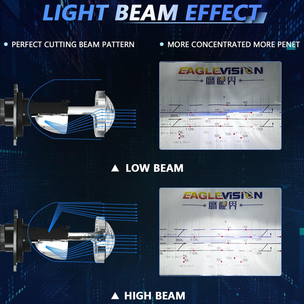 1. Adopting a unique lens design, the light pattern has a low-beam tangent effect. The light pattern is concentrated and rejects astigmatism, making driving safer.
