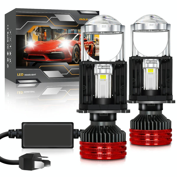 N5 1 Pair H4 Car Double Copper Tube LED Lens Headlight(Gun Color + Red)
