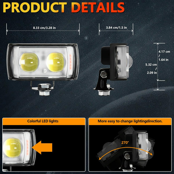 2. 6 modes: 6 modes: high light white light/low light yellow light/yellow light + white light/white light + yellow light strobe/blue light + red light/blue light + red light strobe. It can be used as work lights, auxiliary lights, warning lights, and other diversified needs. You can switch the required mode at any time according to different driving conditions.