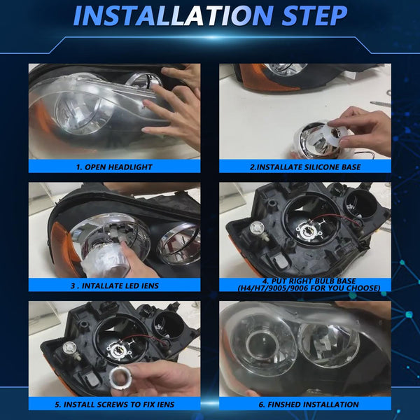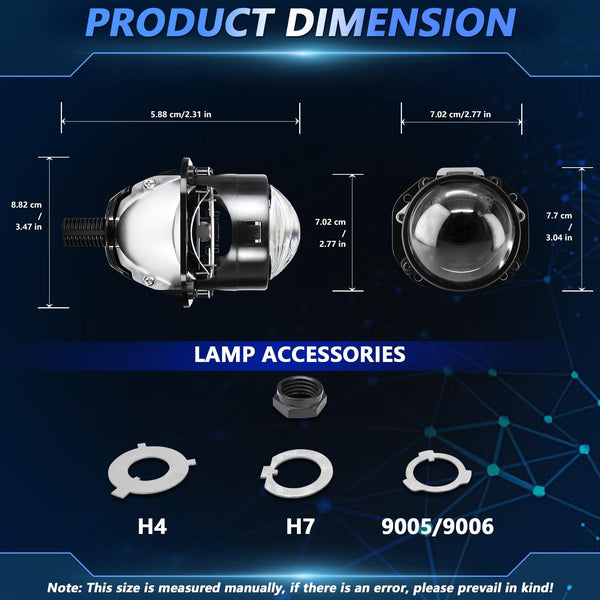 6. Non-destructive installation and direct use, no need to purchase additional light bulbs. Comes equipped with H4 H7 9005 9006 sleeve ring mounting fasteners.